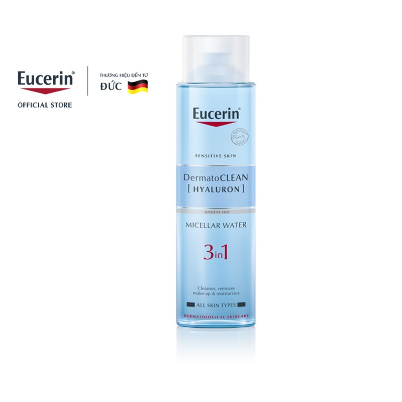 - Nước Tẩy Trang Eucerin Dermato Clean Hyaluron Dịu Nhẹ Cho Da 400ml là tẩy trang dạng nước nhẹ nhàng loại bỏ lớp trang điểm, làm sạch sâu hiệu quả, giúp da thông thoáng tươi mát. - Sản phẩm phù hợp mọi loại da.