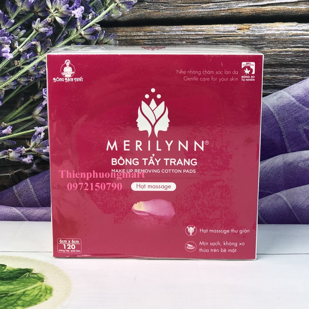 Giới thiệu Bông Tẩy Trang Hạt Massage Merilynn 120 Miếng/ Hộp 6x6 ( Bông Bạch Tuyết )