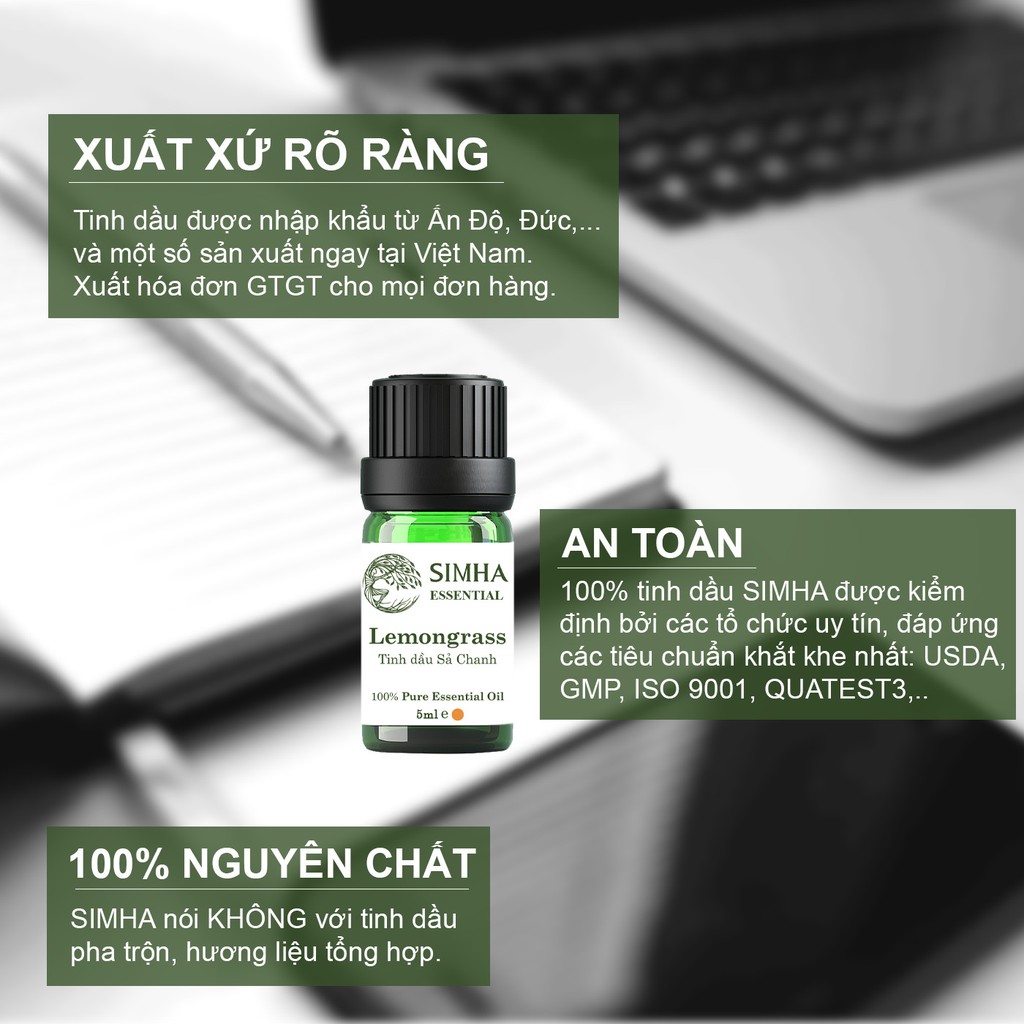 Giới thiệu Tinh dầu nguyên chất SIMHA Sả Chanh, Bạc Hà, Vỏ Quế, Cam Ngọt, Sả Java đuổi muỗi, thơm phòng loại 5ml
