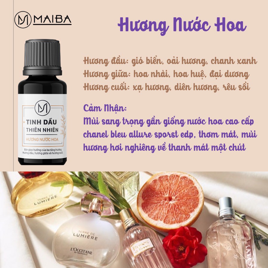 Tinh dầu thiên nhiên nguyên chất ba tầng hương Maiba xông phòng, làm nến thơm giúp thư giãn khử mùi, khử phòng DMB