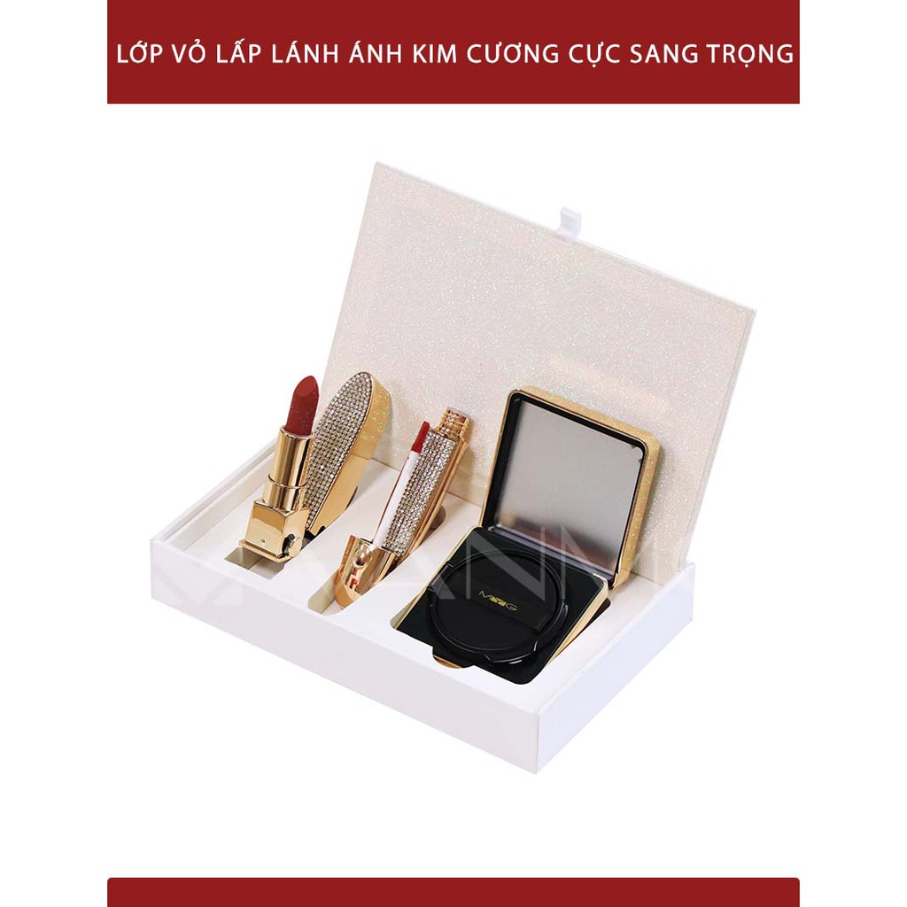 Giới thiệu Bộ Trang Điểm 3 Món Được Đính Đá Kim Cương Lấp Lánh Sang Trọng CUSHION BB 15g+THỎI SON LÌ 3,5g+SON KEM LÌ 3,3g