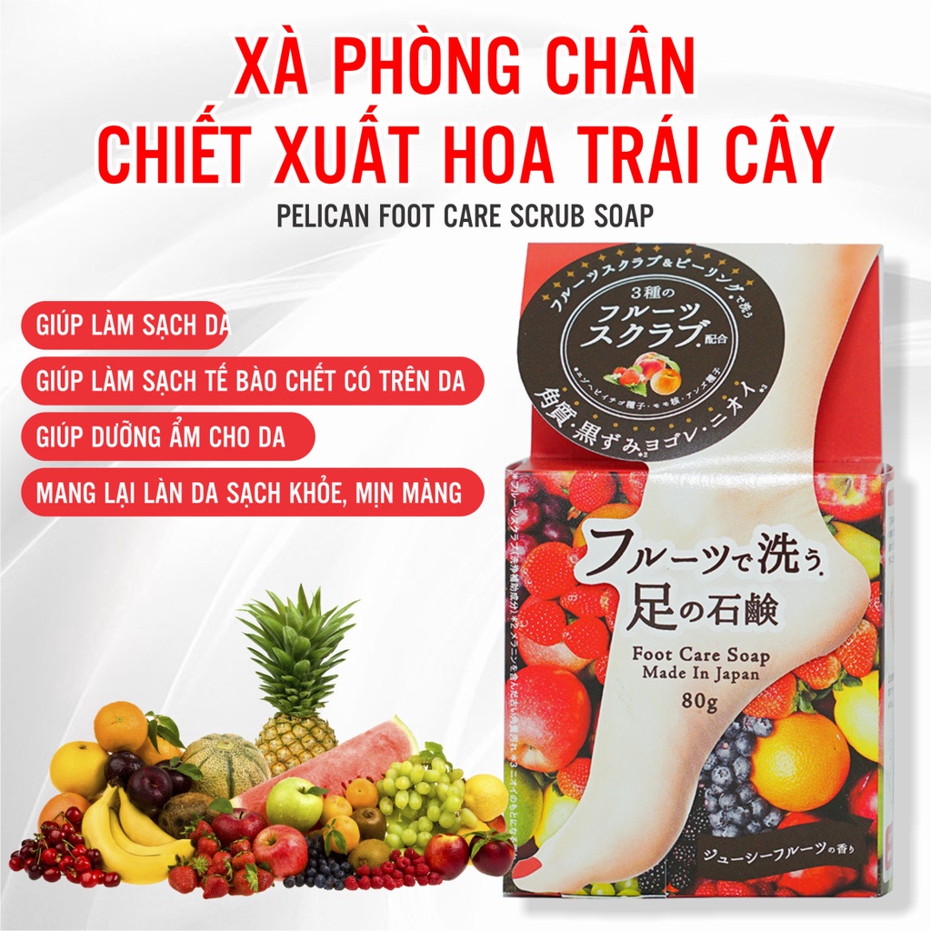 Xà Phòng Rửa Chân Pelican Foot Care Scrub Soap Dạng Hạt Tẩy Tế Bào Chết Chiết Xuất Từ Hoa Trái Cây (80g)