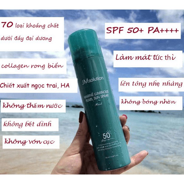 Xịt Chống Nắng Chiết Xuất Ngọc Trai Jm Solution Marine Luminous Pearl Sun Spray SPF 50+/PA +++ mang đến giải pháp bảo vệ làn da hữu hiệu khỏi ánh nắng mặt trời, đồng thời giúp dưỡng ẩm và chăm sóc cho da suốt cả ngày.