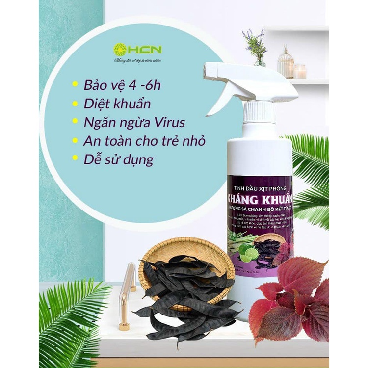 Giới thiệu Xịt phòng tinh dầu kháng khuẩn xông phòng diệt vi khuẩn các mùi hương tía tô, xả, chanh chai 500ml